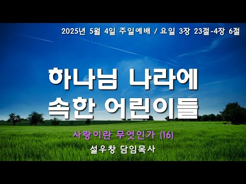 창의문교회창의문교회 2025.05.04 예배와 말씀 주일예배 [창의문교회 주일설교] 사랑이란 무엇인가(16) - 하나님 나라에 속한 어린이들 본문: 요한일서 3:23-4:6제목: 하나님 나라에 속한 어린이들설교자: 설우창 목사[온라인 일용할양식]설교를 듣고 온라인으로 제출해 주시기 바랍니다.https://forms.gl..