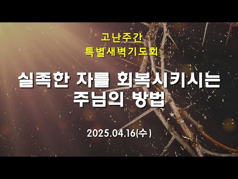 1. 종려주일 오늘은 종려주일입니다. 1,2부 예배시간에 성찬식이 진행됩니다. 2. 고난주간 특별새벽기도회 일시: 4월 14일(월)~18일(금) 새벽 5시 30분 /장..