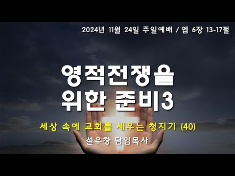 본문: 에베소서 6:13-17제목: 영적전쟁을 위한 준비2설교자: 설우창 목사 [온라인 일용할양식]설교를 듣고 온라인으로 제출해 주시기 바랍니다.https://forms.gle/c..