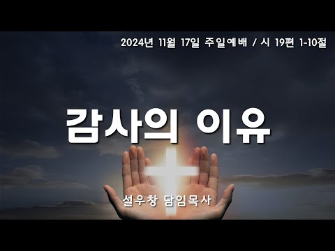 본문: 시편 19:1-10제목: 감사의 이유설교자: 설우창 목사 [온라인 일용할양식]설교를 듣고 온라인으로 제출해 주시기 바랍니다.https://forms.gle/SCoyVM9RG..
