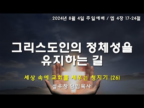 창의문교회창의문교회 2024.08.04 예배와 말씀 주일예배 [창의문교회 주일설교] 세상 속에 교회를 세우는 청지기(26) - 그리스도인의 정체성을 유지하는 길 본문: 에베소서 4:17-24제목: 그리스도인의 정체성을 유지하는 길설교자: 설우창 목사[온라인 일용할양식]설교를 듣고 온라인으로 제출해 주시기 바랍니다.https://forms...
