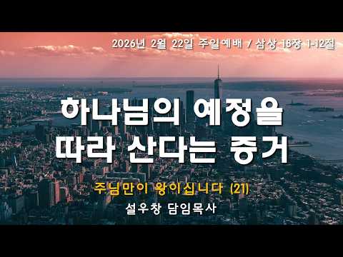 창의문교회창의문교회 2026.02.22 예배와 말씀 주일예배 [창의문교회 주일설교] 주님만이 왕이십니다(21) - 하나님의 예정을 따라 산다는 증거 본문: 사무엘상 18:1-12제목: 하나님의 예정을 따라 산다는 증거설교자: 설우창 목사 [온라인 일용할양식]설교를 듣고 온라인으로 제출해 주시기 바랍니다.https://forms..