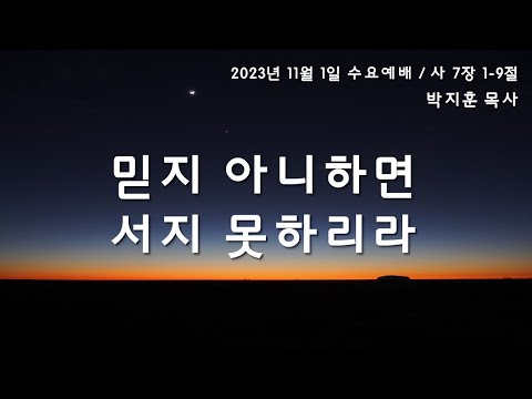 [창의문교회] 2023년 11월 1일 수요예배 - 믿지 아니하면 서지 못하리라 [사 7:1-9]
